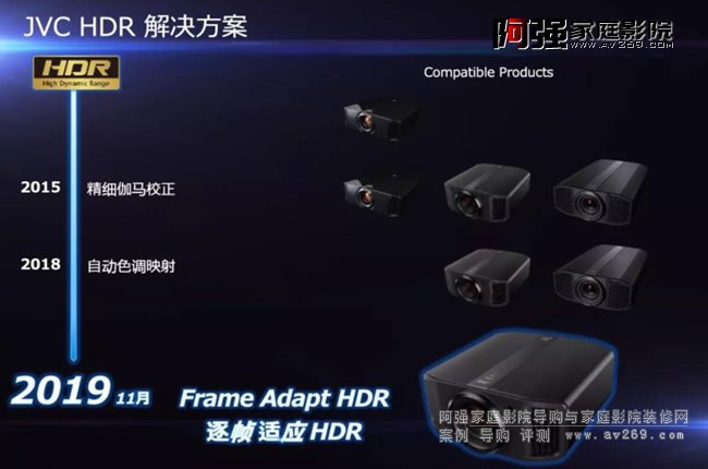 JVC 剛剛發布的 “逐幀適應HDR”(Frame Adapt HDR) 全新功能(LEO系列固件升級),自動分析4K HDR電影每幀畫面的亮度,自動匹配每幀畫面的HDR圖像參數,可以兼容所有HDR10內容。“逐幀適應HDR”實現了4K HDR“畫質”和”易用性”的革命性升級,讓“LEO”(獅子座)系列N11/N8/N6如虎添翼。目前“逐幀適應HDR”(Frame Adapt HDR)已經口碑爆棚,被稱為“4K HDR神器”!