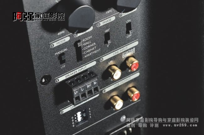 如果用戶家里的功放沒有專門的超低音輸出,那么則可以將前級放大器或者合并機的line out接口與KF92的RCA輸入連接,然后KF92的輸出接口接入后級放大器(合并機則不必)。如果用戶所用的音響系統沒有line out接口,依然可以通過SPEAKER IN喇叭接口,去連接功放喇叭輸出的四條線。這是在雙聲道Hi-Fi系統中加入超低音的常用方式,但市面上能同時支持這些安裝方式的超低音則很少,要像KEF這樣的老牌廠商才會設計得如此周到。