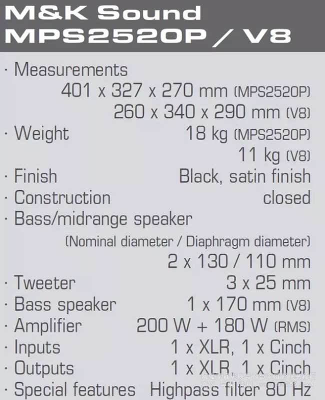 使用MPS2520P來(lái)搭配V8超低音進(jìn)行音樂(lè)重放,這是一個(gè)相當(dāng)專業(yè)的監(jiān)聽(tīng)組合,因?yàn)樵谥谱鬟^(guò)程中,這兩個(gè)型號(hào)的產(chǎn)品就在同一個(gè)無(wú)響室里進(jìn)行測(cè)試,對(duì)于M&K的官方來(lái)說(shuō),V8和MPS2520P這兩款產(chǎn)品可以完美互補(bǔ),能夠完全覆蓋從35Hz到25kHz的頻率響應(yīng)范圍,而3個(gè)陣列式的高音單元,則可以還原出優(yōu)質(zhì)的聲音動(dòng)態(tài)效果。