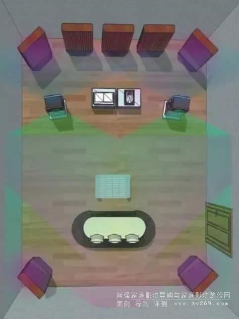 計算房間的聲學比例,確定吸音區域、擴散區域,決定座椅的位置,通過平面佈局、揚聲器、過道、座位距離,來計算幕布尺寸和視線。