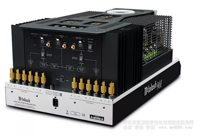 重量高達77.1公斤的 MC901,居然只有「單聲道」?您沒看錯,而且 MC901全新的設計創意,成為「雙單聲道」驅動的解決妙方:過去用雙擴大機驅動,不僅要準備兩套后級,而且至少其中一套后級必須具備音量控制,但是 MC901單一部后級就擁有晶體與真空管兩套功率輸出,可分別驅動低音與中高音,而且,就算您不玩雙擴大機驅動,MC901等于同時讓您擁有大功率McIntosh晶體后級與真空管后級,隨時想聽哪一種音色都可以,MC901讓您魚與熊掌可以得兼。
