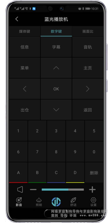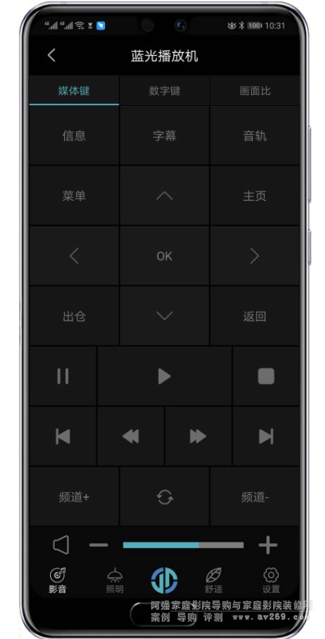 當我們進入播放器的控制界面后,同樣也是簡潔直觀的用戶視覺,第一界面媒體鍵即可操作播放器90%功能。靠下面有個進度條的那一行,就是我們AV功放的音量控制和靜音控制功能,并且我們的數據都是雙向同步的,即使多個APP同時使用,下面的功放音量進度也是保持同步顯示。