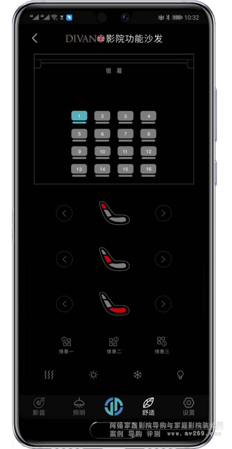 這是影院專用沙發的控制界面,目前璟睿和DIVAN影院功能沙發無縫對接,DIVAN沙發網關是璟睿開發的,共享接口協議,友商們控制DIVAN沙發也是通過我們網關實現。最多可以控制16個沙發,每個沙發可以控制頭部、腰部、伸展的姿勢。并且有3種記憶功能,想想你的客戶在你的展廳被你不經意間操作了沙發姿勢,會是什么樣的感覺?驚不驚喜?還不開心?嗨不嗨皮?