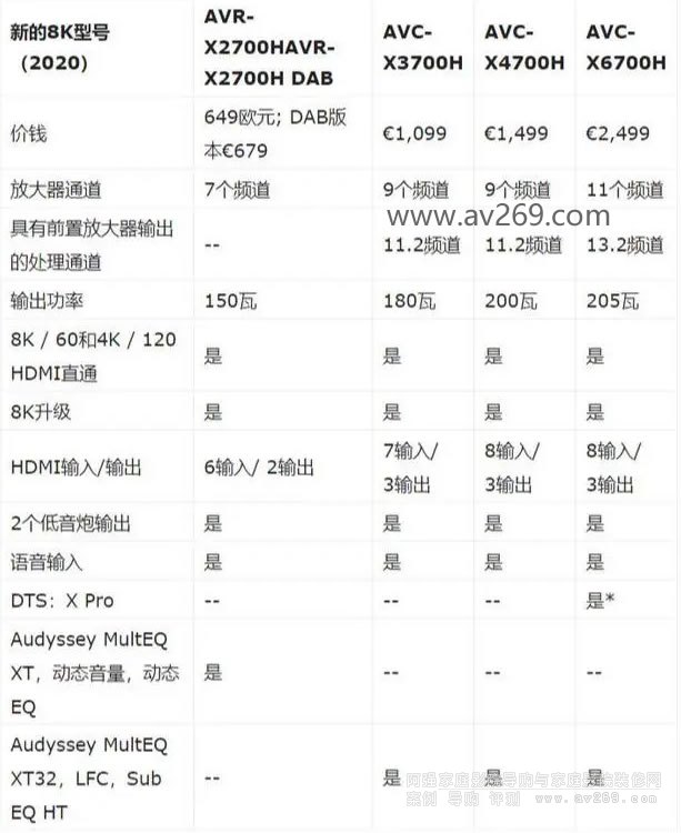 X系列2020的所有AVR的最重要功能及其價格和進入市場的日期可以在概述中找到: