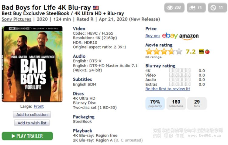 www.blu-ray.com,這是一個全英文網站,基本可以查詢到目前大部分藍光碟和4K藍光碟的基本情況,包括最重要的分辨率是否是“原生”4K,以及編碼格式、HDR、屏幕寬高比等