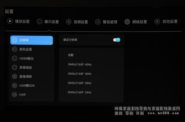 ▲ 進入「設定」選單之后你將發現UHD2000的功能很多,它可以設定解析度、更新率、HDMI影音分離輸出、HDR/SDR轉換等等一大堆。