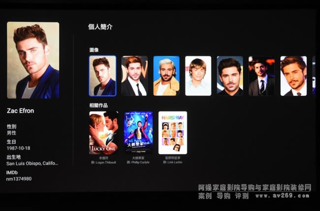 ▲ 當你點選導演或演員時還能即時秀出照片。再點選,就可以進入演員的專屬頁面,裡面有照片、簡介,并告訴你硬碟裡還有這位演員的哪些作品。