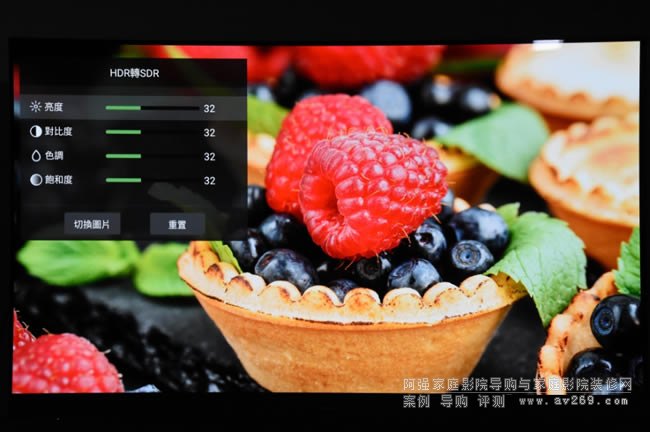 在其「顯示設置」選單裡面,有一項HDR to SDR設定,假如你使用的顯示器材不支援HDR(例如現在很多投影機仍然不支援HDR),就可以使用這個功能,讓HDR影片在SDR顯示器材上也能有理想表現。而且HDR to SDR還可以微調效果,除了有三檔Gamma值可以切換之外,還可以使用「圖像參數」功能,也就是叫出內建的測試圖,讓你看著顯示器材呈現的實際效果邊看邊調,快速得到理想效果。