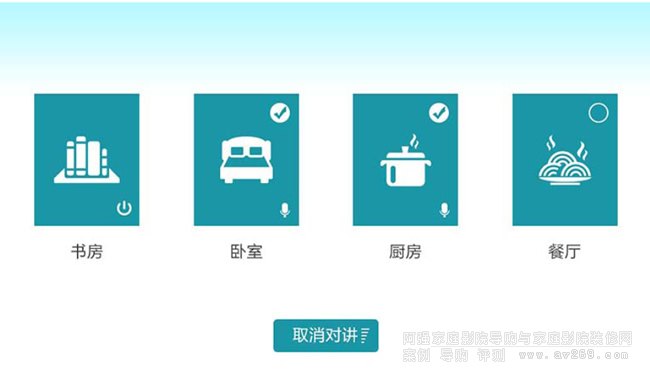 可以通過控制面板或者手機與分區房間發起對講,只需要創建對講小組,將需要加入的房間勾選就可以了,可以一對一,也可以一對多。