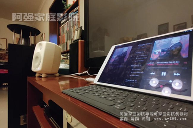 當小巧得讓人懷疑人生的G2來到雜志社試音室的時候,我迫不及待用聲美力木腳架撐起音箱,采用最直接最容易出效果的正三角近場監聽擺位法。一番接線后先用手機+Lotoo樂圖PAW S1“小尾巴”為音源,以真力原配的3.5mm-RCA信號線接上試聽。為什么用手機呢?因為手機里有一些常用來做測試的DSD和HiRes文件,而且這套便攜系統聲音素質并不差。
