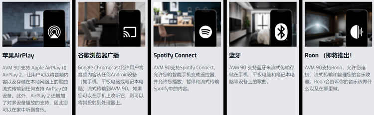 面向對象的音頻編解碼器已更新,最多支持15.4通道;以及對Apple AirPlay2,Google Chromecast,藍牙,Spotify Connect(即將推出)和Roon(即將推出)的內置流支持。