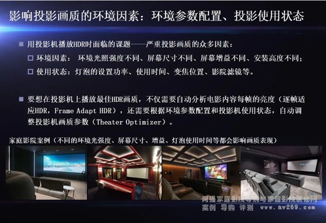 答案是:“逐幀適應HDR”升級“影院優化器”,用戶只須輸入屏幕參數,其他所有工作交給投影機自動運算完成。