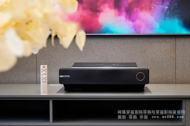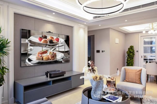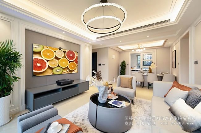 廳堂影像利器 激光電視客廳案例應用賞析,激光電視的出現讓客廳空間輕松享受百寸大畫面,尤其是各大品牌的加入愛普生、明基、奧圖瑪等都推出自己的特色的激光電視產品,那么激光電視和抗光幕布的搭配也很是講究,今天阿強收集了一例海信激光電視的應用案例供朋友們參考:楊女士家的裝修簡約素凈,卻并不呆板,反而透著一種靈動的時尚,墻上掛著的各種裝飾畫功不可沒。而掛在客廳的海信激光電視L9F畫面艷麗,仿佛是裝飾畫中的一幅,和整屋風格十分契合。
