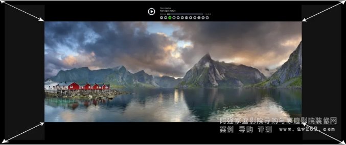 1,原始比例顯示,這樣幕布左右會留出空白。這種方案的優(yōu)點是:16:9的素材完全顯示,且比例正確。如果不喜歡左右黑邊,可以配合左右遮幅幕。