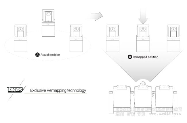 在真實(shí)的家庭影院空間里,我們不可能將音箱都放置在合適的位置上。而且,Dolby、DTS和Auro對音箱的擺位都各有其想法。Trinnov Audio專利的“重新映射(Remapping)”是唯一的解決方案。