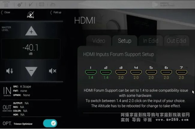除了可解決HDMI不兼容問題的模塊化硬件設(shè)計(jì),Trinnov Audio專有的軟件平臺,可以讓用戶直接在Altitude上監(jiān)控/分析所有輸入和輸出的HDMI數(shù)據(jù)。