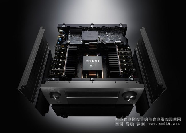 在后級部分,本機(jī)以11個獨(dú)立電路板的單聲道功放電路組成13聲道功放電路,每聲道輸出級使用一對Denon與Sanken合作開發(fā)的特制大電流功率晶體DHCT-A3 / DHCT-C3,「單聲道化」的后級結(jié)構(gòu)能提高聲道之間的分離度、有利于空間感與音像移動感的表現(xiàn)。