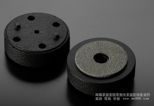 ▲玩家們應(yīng)該有十幾年沒見過Denon環(huán)繞擴(kuò)大機(jī)裝「鑄鐵腳」吧?AVR-A110終于又把這個重量級的鑄鐵抑振腳裝回來了,在腳的底部還有一層吸收振動的軟性材料。