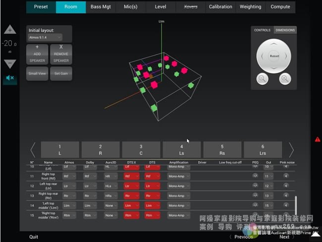 3D remapping不僅能解決喇叭安裝位置不理想的問題,前面我還提到Dolby Atmos、DTS:X與Auro-3D要求的喇叭擺位方式都不相同,既然3D remapping能夠作相當于改變喇叭擺位的處理,就能夠配合不同環(huán)繞編碼格式個別要求的多聲道喇叭標準擺位,對應(yīng)每一種格式都能以3D remapping將所有喇叭的方位與高度「移位」到最理想的位置,確保音場與聲音物件定位的正確性,像這樣的能力除了Trinnov以外,其他所有品牌的制品都沒有。