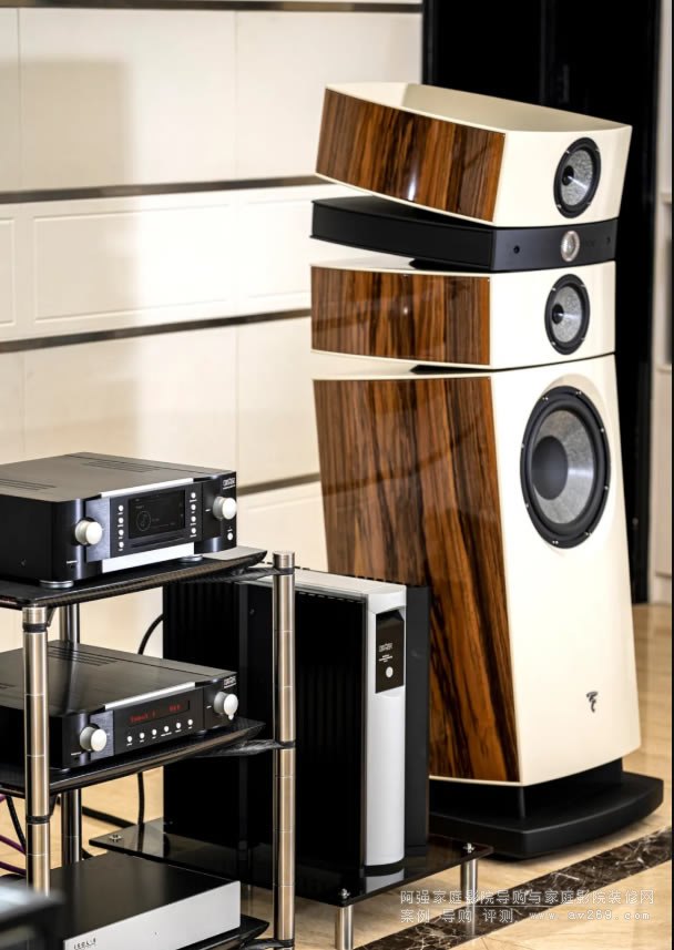 這次我們現場聽的是FOCAL次旗艦 Stella Utopia EM EVO。這音箱一發布就獲得Hi-Fi界的關注,比起旗艦Grand Utopia EM EVO巨大的箱體和16英寸的低音單元配置以及一百四十多萬的定價,即使買得起音箱的,在寸土寸金的大中型城市,讓它能自由呼吸的聽音空間得七八十平方。老二Stella Utopia EM EVO縮小了箱體和低音單元尺寸,更低的售價對環境要求也相對低很多,一對13寸低音的中型的落地箱,三四十個平方就能讓它愉快的歌唱,加上FOCAL最新技術的運用,多種箱體外飾的搭配,一改老FOCAL黑色和簡單的木色箱體顏色搭配,讓發燒友有了更多的選擇的余地,這幾年也有不少發燒器材越來越注意外觀配飾與環境的搭配,FOCAL就是其中之一,穩重之中帶著時尚和奢華。