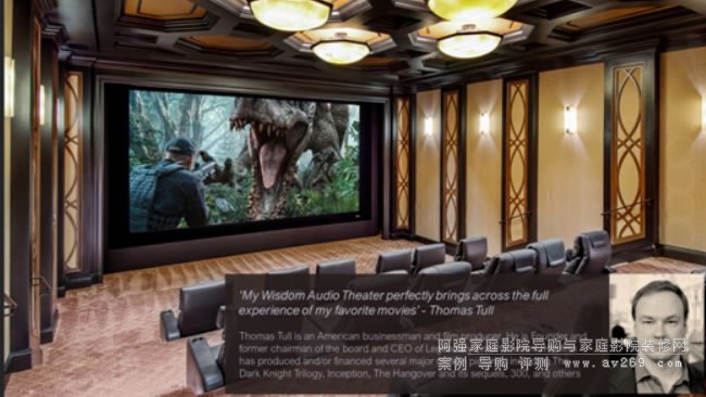 美國傳奇娛樂公司創始人、前董事長兼CEO Thomas Tull(托馬斯·圖爾)表示:我的Wisdom Audio劇院完美地展現了我最喜愛的電影,它帶給了我豐富的體驗。Thomas Tull和他的公司參與制作和投資了多部我們耳熟能詳的電影作品,包括《黑暗騎士三部曲》、《盜夢空間》、《宿醉》及其續集、《300》等。