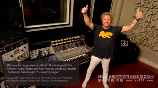 美國老牌音樂人,搖滾歌手、吉他手、詞作人、音樂家以及企業家,同時還作為The Red樂隊搖滾歌手而聞名的Samuel Roy Hagar表示:我們剛剛將工作室的音箱升級為Wisdom Point2時,我就聽到了以前從未聽到過的很多音樂細節。