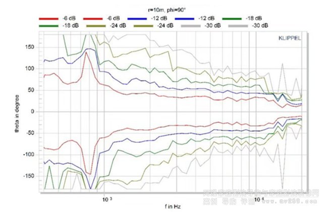 在三十年前就有廠商開發出恒指向號角,如EV,他們通過一個大概80*80cm開口的大號筒來實現恒指向控制,但龐大的體積不利于安裝應用。新一代的STOXSOUND揚聲器系統通過另外的技術手段,用較小體積的結構來實現更有效的寬頻帶恒指向波束控制,并且控制的頻率更低。新的資料里面都已經將這個等壓線作為重要指標來顯示。