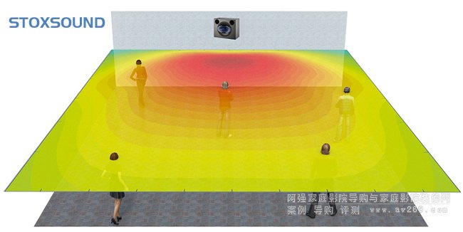 恒指向覆蓋的好處就是:在聲場范圍內,頻響很均勻,哪怕超出一點覆蓋范圍的位置也具有良好頻率響應,因為它的聲壓下降是寬頻帶整體下降,只是聲壓降了,但頻響依然平坦,造就了STOXSOUND這個影院系統的聲場覆蓋特性非常優秀。