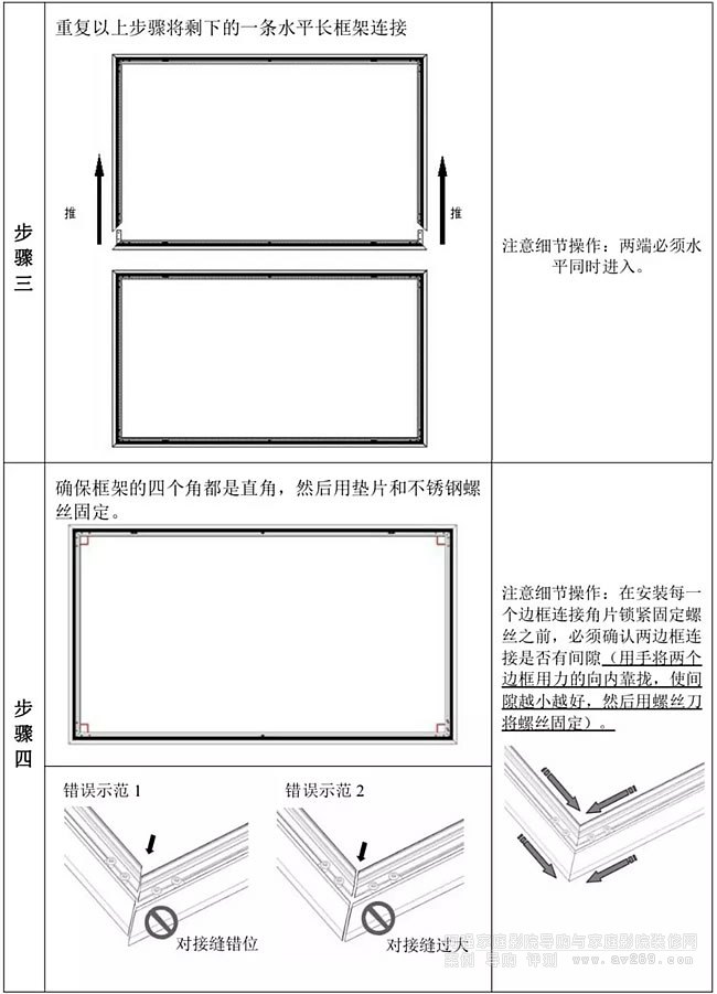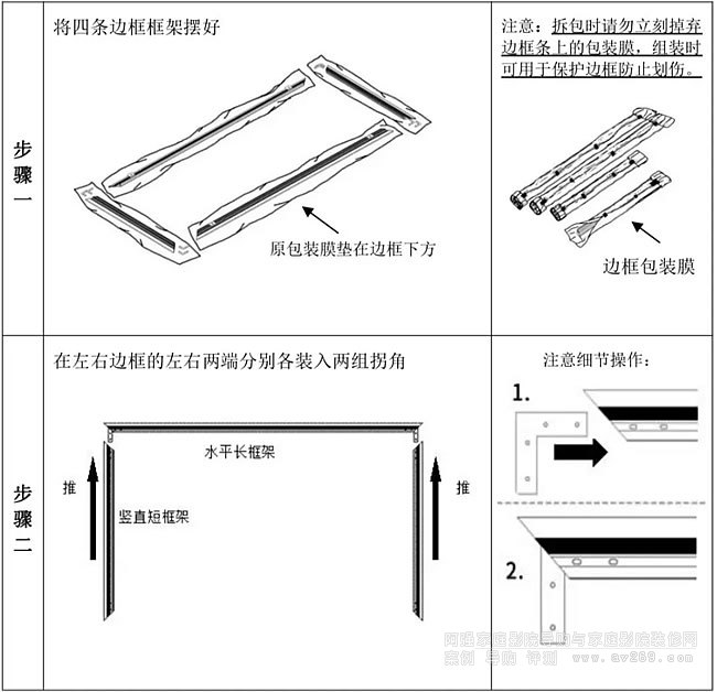 Focusview焦點投影屏幕,超窄邊框畫框幕安裝說明書,下面附有詳細的圖解!