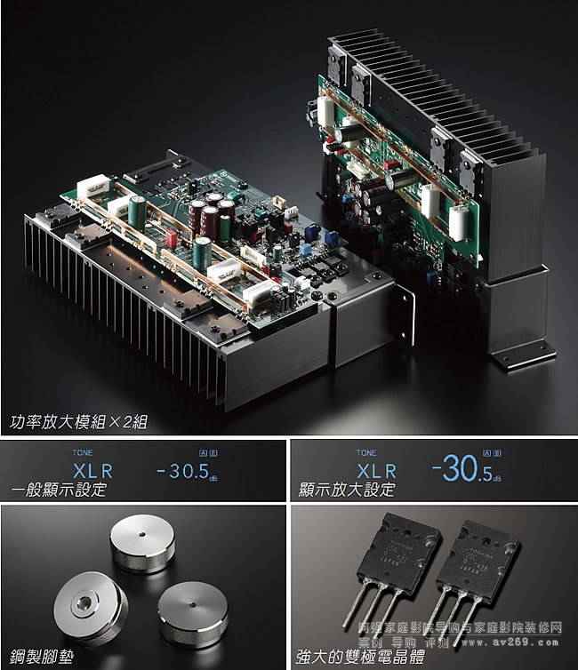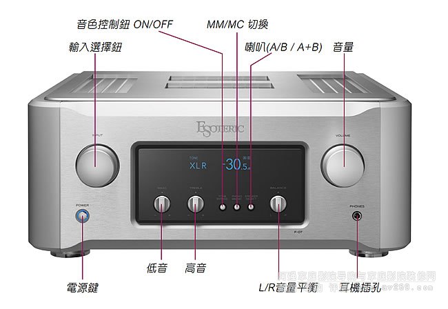 汲取分體式機種的設計潮流,採用全平衡架構的前級,不僅高訊噪比而且低阻抗,所以性能強大,能夠純淨地放大信號。