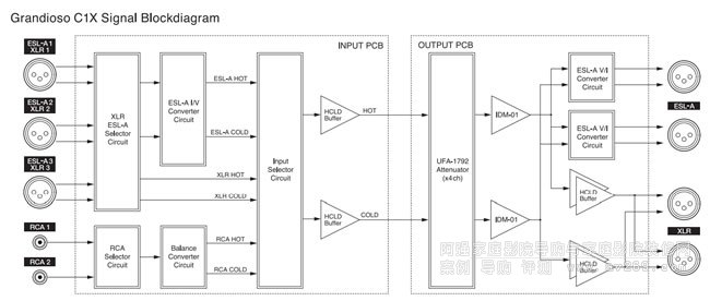 左右聲道做到徹底獨(dú)立和一致。Grandioso C1X從前級(jí)輸入和聲音放大部分到DC電源供應(yīng)為止,特別講究左右聲道獨(dú)立,包含AC電源線在內(nèi)的所有零件都是採用單聲道架構(gòu)。把二個(gè)單聲道的前級(jí)收進(jìn)同一個(gè)箱體的架構(gòu),對(duì)于一直堅(jiān)持雙單聲道的ESOTERIC旗艦來說再適合不過了。