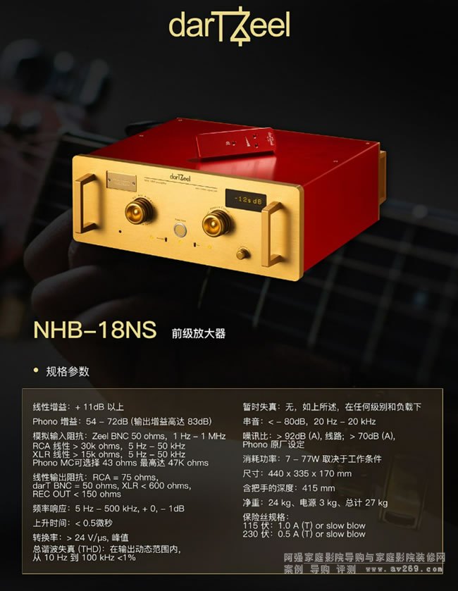 在設計上,darTZeel的線路設計總是非常精簡,這是因為他們奉行最簡原則,信號經過盡量少的元件,就可以盡量避免額外的失真。不論NHB-18NS前級或者NHB-108后級的TIM互調失真都低到無法測量的程度。darTZeel所使用的零件都符合200MHz以上頻寬的性能,NHB-18NS前級的頻率響應規格都高達1Hz-1MHz(-6dB,10Hz-100kHz-0.5dB)的驚人表現,或許這就是darTZeel所追求美聲在性能規格上所應有的呈現。darTZeel的產品型號的NHB代表的是Never Heard Before(從未聽過的美聲)的意思,聆聽這樣的產品無疑令人心馳神往。