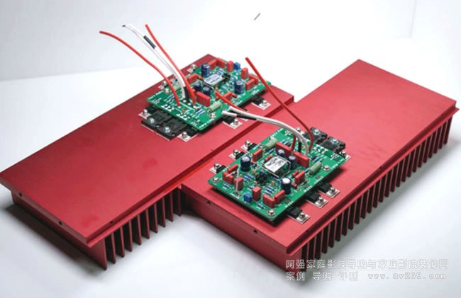 固定在散熱片上的放大線路因為簡單而且直立安裝所以反而不顯眼