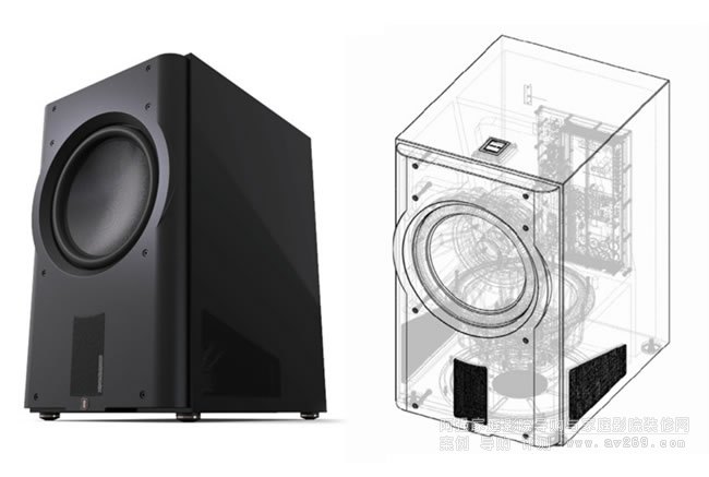 Perlisten 低音炮的箱體結構使用的是重型HDF而不是標準MDF,并具有廣泛的內部支撐網絡結構,形成非常惰性的箱體。前檔板的厚度超過3英寸(76mm),因此單元被安裝在非常堅固前面板上。目前唯一可用的飾面處理是光亮的黑色鋼琴漆,但對于那些想要更好匹配他們裝飾并愿意支付費用的人來說,可以定制飾面,但需要額外付費。