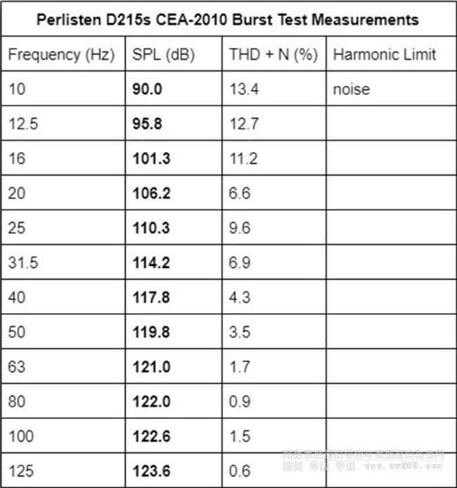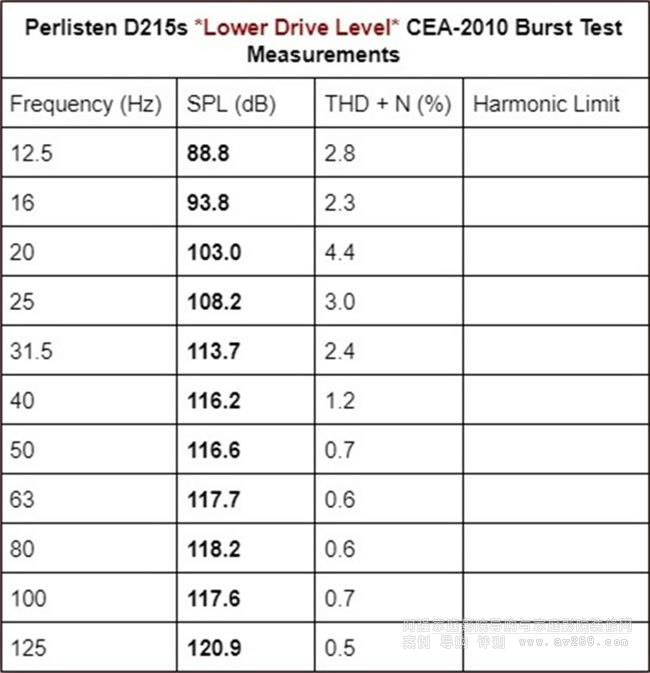 Perlisten D215s的CEA-2010數據(2m,RMS)