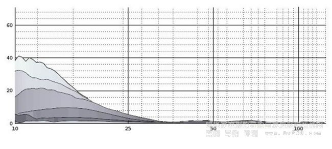 上述測量顯示了當我們稍微降低增益時會發生什么,這是來自幾個不同增益級別的采樣,失真非常低。對于低音炮測試環境來說,噪聲相對較低,在較高頻段中,環境本底噪聲與我們可以從低音炮本身記錄到的噪聲相差無幾,而且這些仍然是相對較高的電平,從感知的角度來看,失真是完全可以忽略的。我們公布這些數字是為了表明,僅通過降低低音炮性能范圍的上限,失真度會下降多少。當沒有推到最大驅動電平時,所有低音炮的失真都會顯著降低,D215s也不例外,即使在高輸出電平下,失真水平也很低。