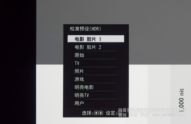 2: 校準預設(HDR)模式,包括了電影膠片、原始、TV、照片、游戲、明亮電影、明亮TV與用戶模式