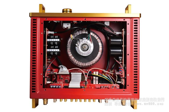 除了外觀獨立獨行采用華麗的紅色、金色相搭配外,Hervé Delétraz的產品設計理念更多是體現在與眾不同的線路設計上,他堅持單端線路比平衡線路更適合聆聽音樂的理念,認為大多數的Hi-End音響制造商跟風專業器材采用平衡線路,卻未必是聆聽音樂最佳的選擇。誠言,平衡線路由于共;コ獾脑蚩傻窒胍簦铱蛇_到長距離傳輸抵御干擾的目的,令重播的聲音更干凈。