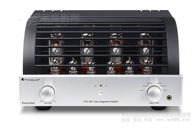 EVO(EvoLution)是PrimaLuna最新的產品系列,其包括綜放、前級、后級與DAC,型號命名都一樣,最高階的為EVO 400、依次為EVO 300、EVO 200及EVO 100,PrimaLuna產品最大的特點就是有超多獨家技術、功能齊全與可同時對應多種真空管。EVO 400真空管綜放有超線性(Ultra-Linear)及三級管(Triode)兩種輸出模式,在使用EL34真空管時,前者每聲道可輸出70W,后者每聲道可輸出38W。為什么要特別提到是使用EL34時?因為PrimaLuna采用特別的自動調整偏壓線路(Adaptive AutoBias),設有高、低偏壓值切換,用家可更換KT88/KT120/KT150等其他同等規格的真空管,擁有更多的調音彈性與選擇。