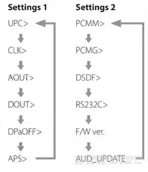 UPC>***:來自CD播放或外部數(shù)字輸入(RCA輸入、OPT輸入、USB輸入)的 PCM信號可以升頻或轉換為DSD信號。默認情況下為ORG。