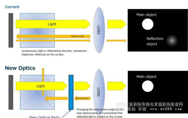 抑制的光學(xué)系統(tǒng)內(nèi)反射光,凈化輸出、消除鬼影使圖像品質(zhì)得到飛躍的提升,ANSI對比度達(dá)到了原有商品的大約兩倍。