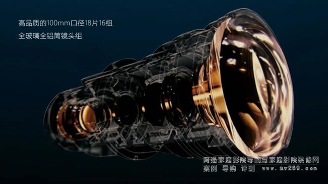 第三代ZEUS旗艦機(jī)型DLA-N118搭載16組18枚100mm直徑的全玻璃全鋁制鏡筒鏡頭組。該鏡頭組可以確保上下100%,左右43%的大范圍移動,將高分辨率畫面投射到屏幕的每一個角落。在100mm大口徑下采用了RGB曲折率不同的5枚特殊低色散鏡頭,可以在移動時抑制色差和拖尾,忠實的還原8K的分辨率。其他機(jī)型DLA-N98、DLA-N88、DLA-N80采用了15組17枚直徑65mm的全玻璃透鏡。可實現(xiàn)聚焦到畫面周邊的高分辨率圖像。