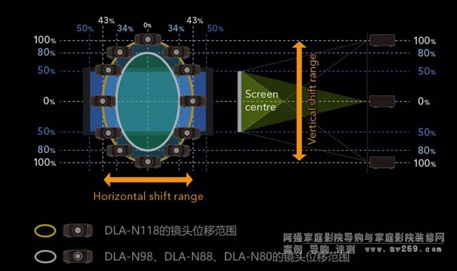 DLA-N118原生對比度100,000:1、DLA-N98原生對比度80,000:1、DLA-N88原生對比度60,000:1、DLA-N80原生對比度40,000:1。