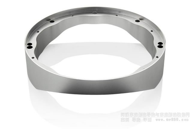 HTM81 D4使用雙實(shí)心鋁制底座安裝兩個(gè)翼弦形低音,每個(gè)鋁制底座被固定到弧形箱體中最硬的部分。這些堅(jiān)硬的結(jié)構(gòu)形成一體化結(jié)構(gòu),為大功率低音振盆體提供完美的支撐。