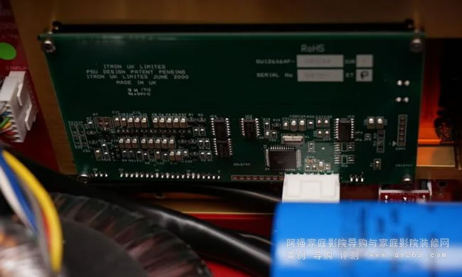 此外每聲道四個(gè)電容與整流穩(wěn)壓線路板垂直鎖在左右二側(cè),顯然CTH-8550 MKII的電源是左右聲道分離。CTH-8550 MKII的輸入端與前級(jí)線路也是分左右聲道各一塊線路板,這二塊線路板直接與背板的端子連接,沒有采用連接線,而且懸空固定。底下則還有一大塊線路板,那是USB線路板,上面有CPU,還有一個(gè)大水銀電池,水銀電池供應(yīng)關(guān)機(jī)后的存儲(chǔ)器電力。至于面板的顯示窗,以及輸入端子、操控等線路板則安裝在面板內(nèi)側(cè)。