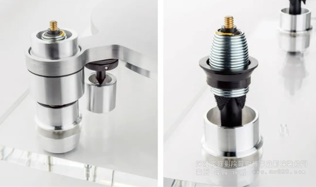 MVSS微振穩定系統是Oracle轉盤自1979年創建以來所做的最重要有效的改進,能有效消除微振動對轉盤、副底盤、唱臂、唱頭和轉盤組件關鍵部分的影響。MVSS設計的目的是捕捉和消除浮動底盤中存在的微振動,讓唱針/盤片交互變得更加準確,唱頭變得更加穩定和更好控制,能從黑膠唱片凹槽中拾取更多信息。原廠說MVSS系統的改善是全面的,包括音色準確性、諧波完整性、瞬態清晰度、動態對比度、音調平衡、音場深度等等。至于MVSS系統是如何工作的?據介紹,Oracle在每個懸浮柱旁邊設計了一個小空間填充極低粘度硅油,調整避震螺絲時會與硅膠儲液器作用,每轉一整圈產生1.27毫米(0,050英寸)的位移。使用前先要對對每個螺絲進行校準,然后鎖固,MVSS系統就能長期穩定的工作。