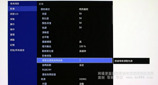 另外在「影像」菜單里還有一個「場景自適應伽瑪系數」設定,同樣有多組數值可選。
