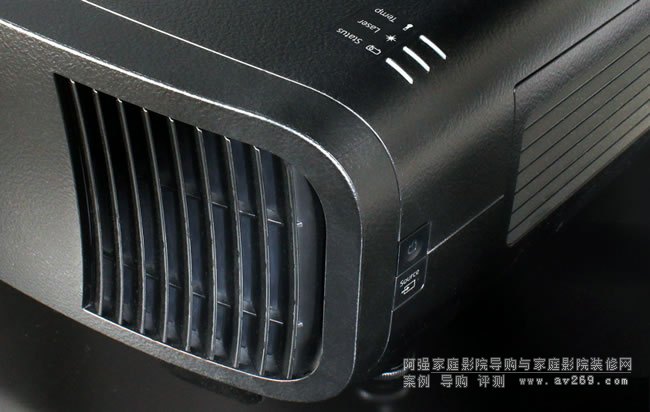 EH-LS12000B由機體左前方進氣、右前方排氣,散熱風扇噪音極低,并且都斜向機體外側,吸入的冷空氣與排出的熱空氣,都不會影響位于機體前方中央的投影鏡頭投射成像。