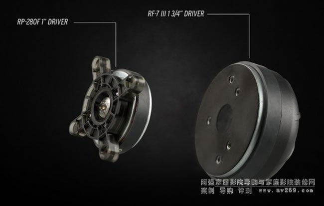 Klipsch為RF-7 III設(shè)計(jì)了全新的高音單元,包括1.75”鈦膜壓縮驅(qū)動(dòng)單元和與之搭配的相位塞,這一設(shè)計(jì)提高了高音單元與號(hào)角喉部的相位一致性,從而改進(jìn)了高頻時(shí)的聲壓線性。