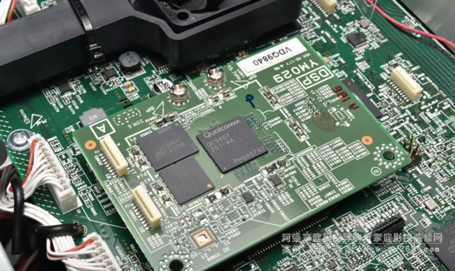 當然RX-A6A最吸睛的地方還是它的電路布局,首先會發(fā)現它的電路架構採三層電路板設計,第一層是數位電路,數位音訊處理的部分採用獨立的電路板,搭載一枚Qualcomm Qcs407 四核心的DSP晶片,處理效能是過去的七倍,可以處理64bit的Surround AI以及YPAO音場校正功能。接著採用一枚8聲道的ESS ES9026Pro DAC晶片負責主要聲道,再用一枚次一級的ESS ES9007晶片(A8A採用ES9026Pro晶片)負責附屬聲道的解碼。